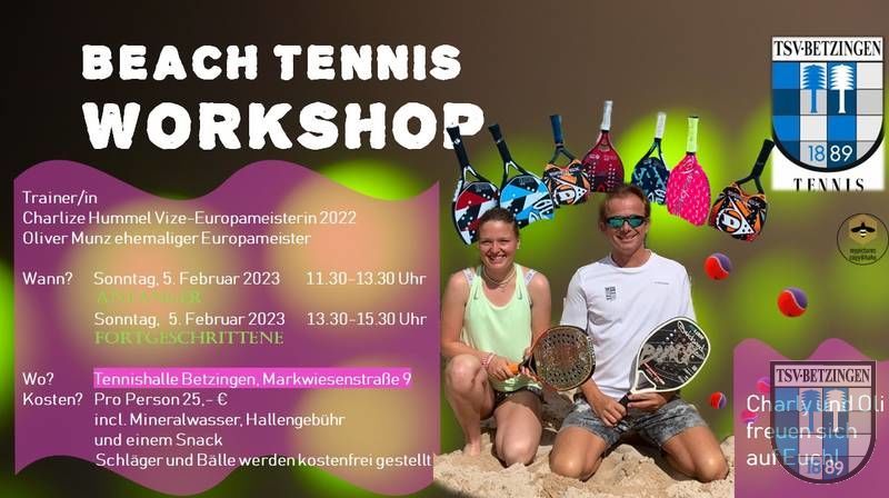 Tennisspielen ist im Verein am schönsten. Die Tennisabteilung des TSV Betzingen wurde 1970 gegründet. Unsere schöne Freiplatzanlage, welche direkt neben der Sportanlage des TSV Betzingen liegt, verfügt über 7 gepflegte Sandplätze und einem Clubhaus mit Sonnenterrasse. Im Jahr 2023 wurden zwei neue Beach Tennis Plätze direkt neben den Tennisplätzen gebaut. Eine eigene Tennishalle, nur wenige Meter von den Freiplätzen entfernt, bietet weitere 2 Spielplätze, um auch im Winter den Tennissport auszuüben.